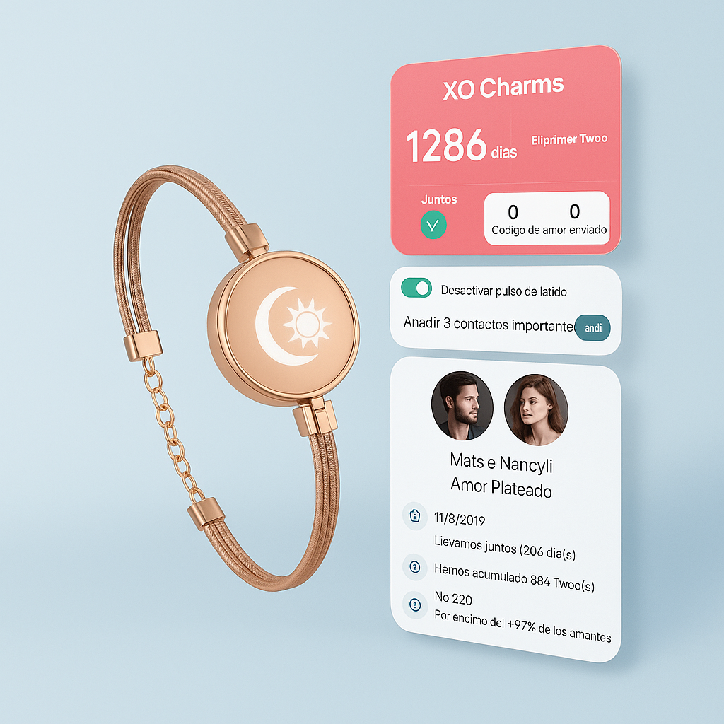 Mantén el lazo fuerte, sin importar la distancia. Nuestras pulseras conectadas son el símbolo perfecto para parejas que, aunque estén lejos, siempre encuentran la manera de sentirse cerca. Con cada vibración sutil o luz suave, recuerda que alguien al otro lado del mundo está pensando en ti. Ideal para regalar en aniversarios, cumpleaños o simplemente para decir 'te extraño'. Porque el amor no tiene fronteras, y ahora, tampoco la conexión
